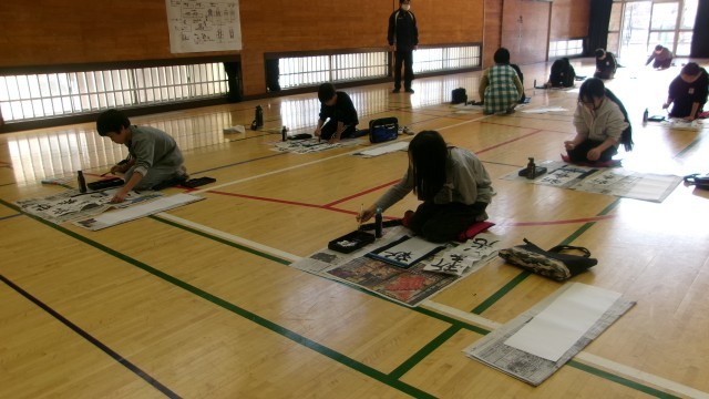 昨日に続き、本日は5・6年生の席書会が行われました。体育館は静寂に包まれ、子どもたちは一文字一文字に心を込めて筆を運んでいました。5年生は「新春の光」、6年生は「緑の大地」という文字を書き上げました。書写学習の成果を生かして集中して取り組む姿がとても立派でした。
