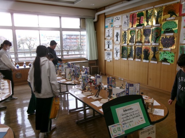 また、同時に行われた作品展では、児童が他の学年や友達の作品を興味深そうに鑑賞する様子が見られました。「すごいね」「どうやって作ったのかな」と感想を伝え合いながら、楽しそうに見て回っていました。学年を越えて学び合い、刺激を受ける、充実した一日となりました。