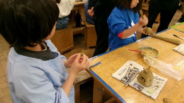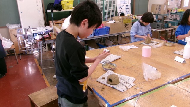 今日は、子ども夢・アートアカデミーにおいて外部から陶芸家の先生をお招きして、1,2年生が粘土を使って自分の宝物を作る体験をしました。自分の思い出を形にする児童や、好きなものを作る児童がいました。3時間という長い時間でしたが、時間が足りないくらい熱中して作っていました。普段聞けないような、専門的なお話も聞くことができて良い経験になったと思います。