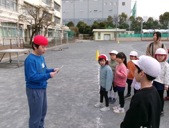 今日は、5年生の児童とこうま幼稚園の園児たちとの交流会が行われました。わなげやドロケイなどの遊びを通して、園児たちに優しく声をかける姿が多く見られ、最上級生に向けての意識を高めるよい機会となりました。事前事後の活動も含め、他者と関わる中で自己理解や相手理解を深め、協力する大切さを学ぶことができました。