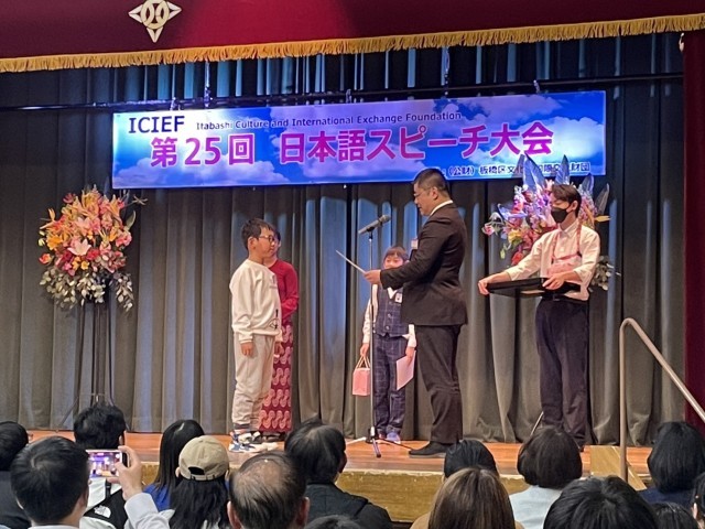 2月21日(土)の板橋区の日本語スピーチコンテストが行われました。本校の日本語学級の代表として高島第二小学校の児童が出場し見事、観客賞に選ばれました。約2年間の間、日本語の学習に真摯に取り組み流暢に話せるようになりました。今、約50人ほどの児童が通級し、日本語の学習を頑張っています。どの児童もこれからの成長が楽しみです。