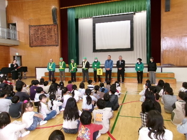 加えて、見守り隊・スクールガード、学童擁護員、受付専任員の方々の紹介も行われました。日頃より登下校や学校生活の安全を支えてくださっている方々に対し、全校児童で「よろしくお願いします」と伝えることができました。これからも、地域の方々に見守られていることへの感謝の気持ちを忘れず、安全で安心な学校生活を送っていけるようにしていきましょう。