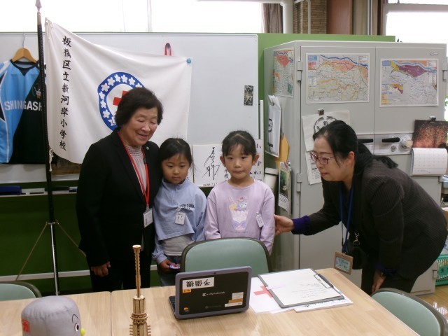 今日の朝会では、青少年赤十字登録式を行いました。講師に東京都青少年賛助奉仕団の臼木信子先生をお招きし、赤十字の活動内容や自分たちにできることについて全校で学びました。最後に1年生の代表児童2人が、一員になった証としてバッジとワッペンを立派に受け取りました。式の後、1年生は教室で「自分たちにできること」を話し合いました。赤十字の一員として、学校生活を楽しくするために何ができるか、どの子も一生懸命に考えている姿がとても頼もしかったです。