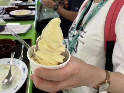 サファリパーク見学の後はレストランでカレーライスを食べました。また、食後はソフトクリームも食べました。カレーもソフトクリームもボリュームたっぷりでお腹いっぱいになりました。