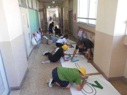 今日の6時間目は6年生が運動会の係打合せのために、学校に残って作業や話合いをしました。左の写真はスローガン係、右の写真は用具係です。それ以外にもプログラム係、司会、放送、計時、準備・整理運動、応援の係があります。コロナ禍で去年までは先生方のみで体育大会の準備・運営を行っていましたが、今年からは6年生が準備・運営に加わり、より子どもたち主体の学校行事になっています。この後、校庭に出て小さい石拾いも行ってくれました。ありがとう、6年生。