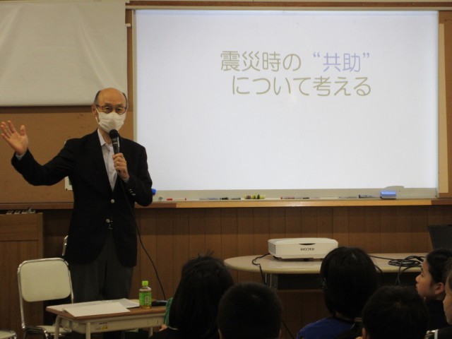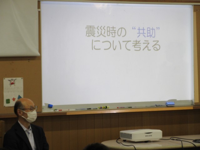 今日は前野町一丁目町会長の稲永さんをお呼びして、地域で助け合う「共助」についてお話をしていただきました。