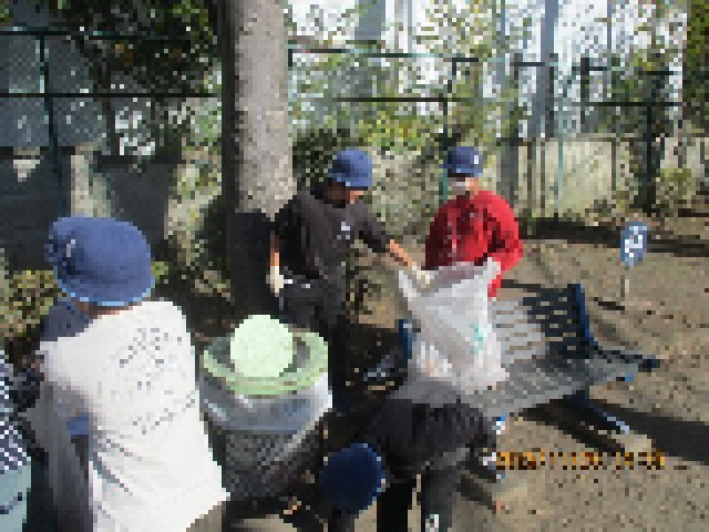 6年生は、けやきの公園で地域の方と一緒に掃除をしました。