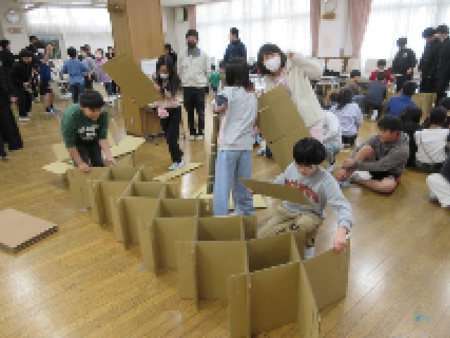 北豊島工科高等学校の生徒さんからは段ボールベッドの設置体験と、ロープの結び方体験、