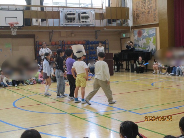 1年生を迎える会がありました。各学年から、富士見台小学校の1年間のことや、休み時間のルール、給食のことや大きな行事、縦割り班のことなどを紹介する出し物が行われました。工夫いっぱいの出し物をみて、1年生だけではなく、全校児童が楽しむことができました。これから、1年生と仲良く楽しい学校生活が送れると思います。
