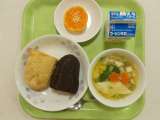 ・二色揚げパン、牛乳、ワンタンスープ、菊花みかん 二色揚げパンは、定番のきな...