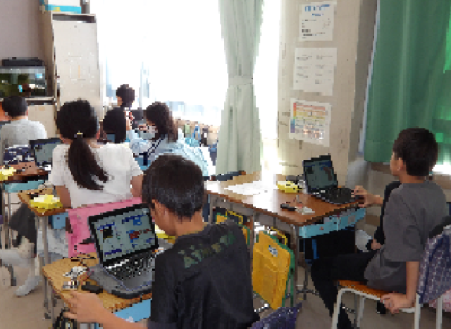 総合的な学習の時間で、福祉について学習しています。不自由な方の不自由を少なくしようをテーマに、マイクロビットを使いプログラミングで何ができるか考えていきます。クラスに紹介できるように今後も進めていきます。