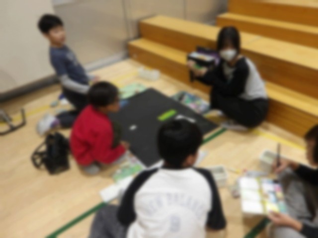 普段と違う体育館という環境での制作をとても楽しんでいました。