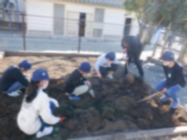 高学年が中心となり腐葉土とたい肥をまぜて畑の土づくりをしました。日頃、中休みに率先して畑を耕している児童がいることもあり、土が柔らかくいい野菜ができそうです。2月の中旬にじゃがいもを植えます。
