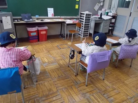 今日は聴力検査がありました。初めての検査にもかかわらず、みんなとても静かに、落ち着いて取り組むことができました。