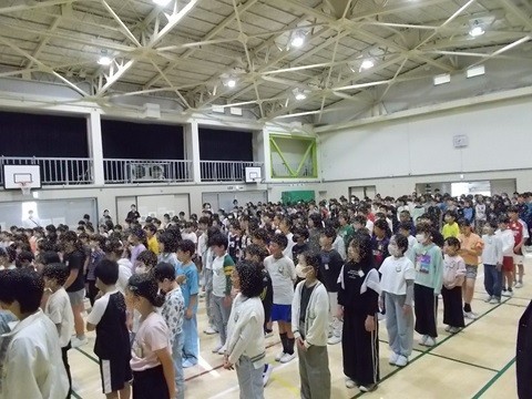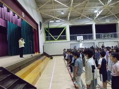 体育館には、6年生が一番に集合しました。静かに体育座りをして待つ姿はとても立派で、全校のお手本となるものでした。さすが最高学年です。