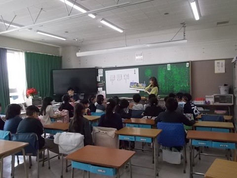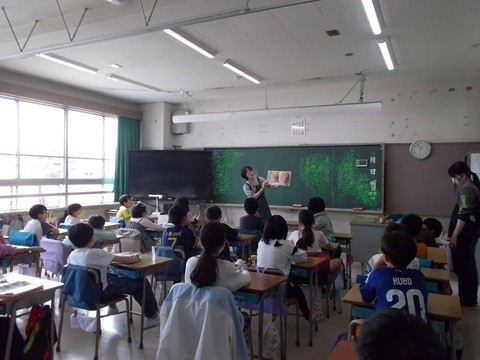 本日、図書ボランティアの皆様による読み聞かせが3・4年生の教室で行われました。