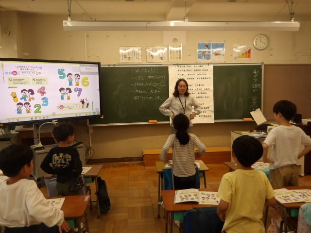 音楽の学習では、リズムに合わせて手をたたいたり、音に合わせて踊ったりしながら楽しく学習しています。