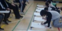 80m走は、初めての曲走路に挑戦。体を傾け腕を振って走るよう練習しました。最後まで力いっぱい走り抜くことができました。