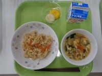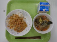 蓮根第二小学校では、2段階の味付けでチャーハンを用意しています。