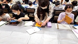自分たちで考えてきたデザインを初めて使う「ひっかき刀」で彫ります。