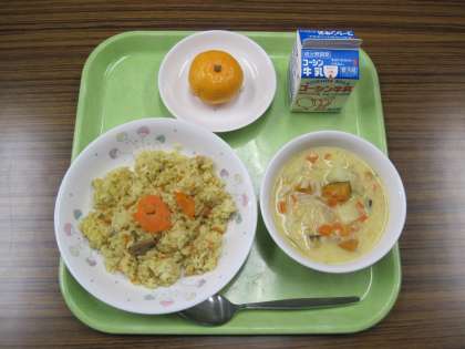 教室では、全員に盛り付けできなかったと思いますが、型抜きされたにんじんがのっていました。