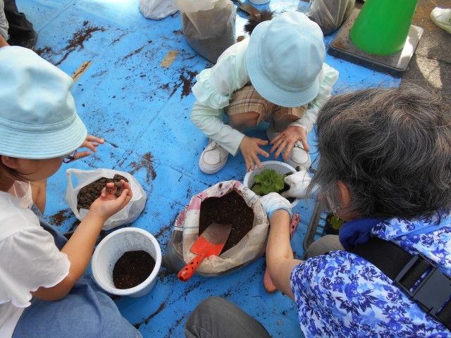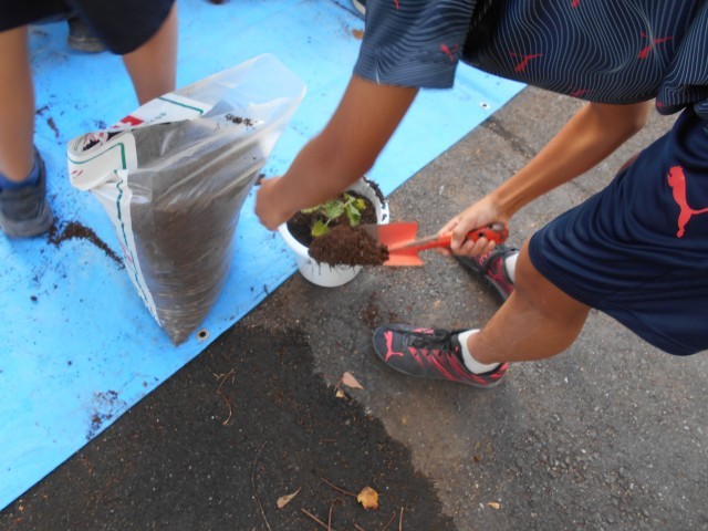 グリーンボランティアの方々にご協力いただき、桜草の植え替えを行いました。植え替えの仕方を丁寧にご指導いただき、1人3~5株ほどの苗を鉢植えにしました。植え替えた後の水やりも積極的に取り組んでいました。グリーンボランティアの方々には、苗の育成や事前の準備など様々ご協力いただきました。今後も休日などの水やりもご協力いただきます。今後もどうぞよろしくお願いいたします。