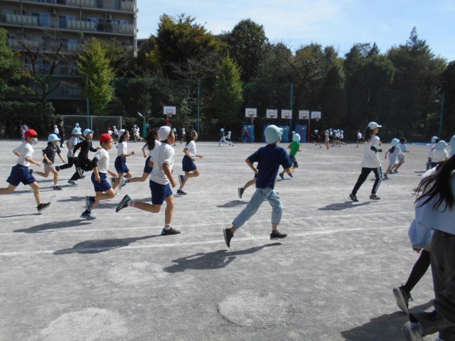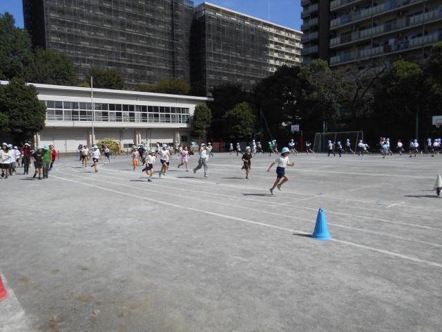 10月2日からマラソン旬間が始まっています。中休みに3分間、自分のペースで校庭を走ります。