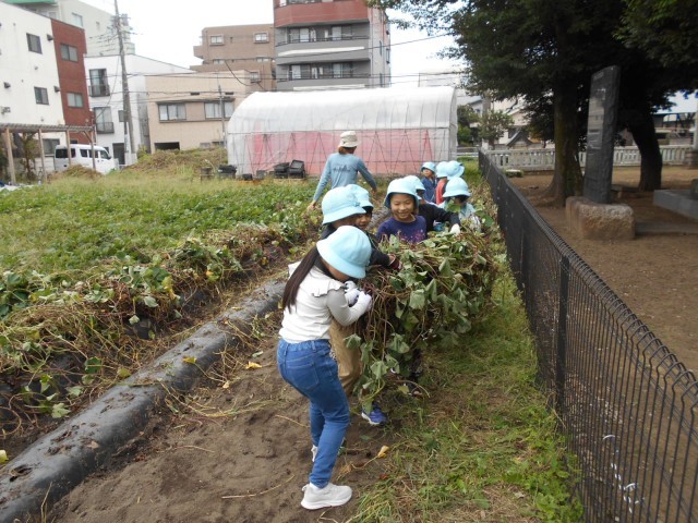 2年生は蓮根ファームに行き、いもほり体験をさせていただきました。切ったつるを運んだ後、どんないもがでてくるか、わくわくしながら掘っていきました。児童は、大きないもが出てきたときには嬉しそうに話していました。つるは持ち帰り、リースにしました。学校のさつまいもの畑もそろそろ収穫の時期です。教えてもらったことを生かして、いもを掘っていきたいです。