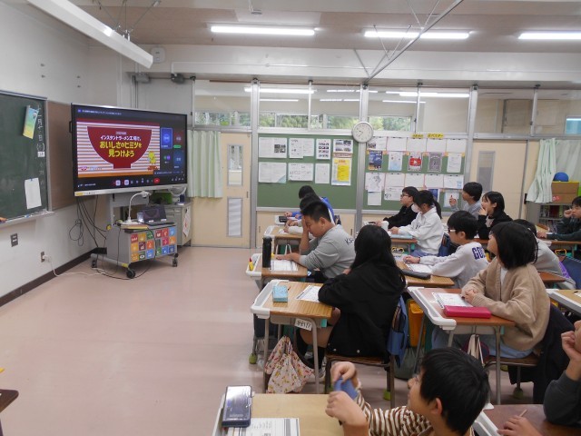 5・6年生は、チキンラーメンの出前授業をMeetを使って各教室で行いました。一度は食べたことあるインスタントラーメンの作り方を知り、とても興味深く話を聞いていました。動画を見ながら、インスタントラーメン工場で、おいしさの秘密を見つけようとワークシートに記述しながら、楽しく学ぶことができました。中でも、インスタントラーメン作りの研究をした安藤百福さんのお話の中に試行錯誤しながら天ぷらを揚げる発想をもとに作り上げたことを知り、驚いていました。また、マインクラフトでインスタントラーメン工場の中の様子を知る機会もありました。最後に感想を発表する時間では、失敗を失敗のままにせず、諦めずに何度も挑戦する姿を将来に生かしていきたいと感想を言う児童もいました。身近に感じるインスタントラーメンについて知ることができ、とても嬉しい1時間でした。