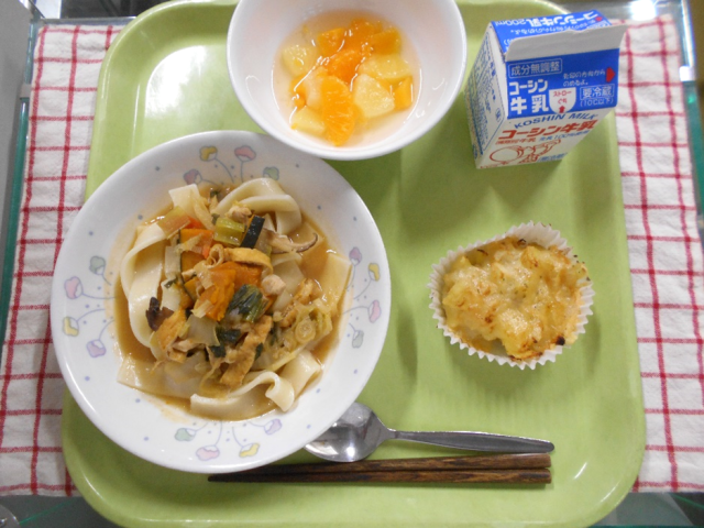 12月は給食委員会で実施したリクエスト給食アンケートで各部門1位になった料理を提供します。今日はデザート部門1位のサイダーポンチです。朝から楽しみにしていた児童も多かったようです。