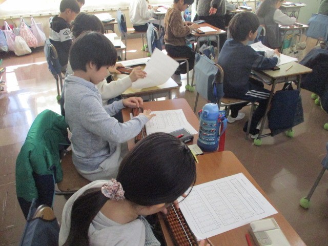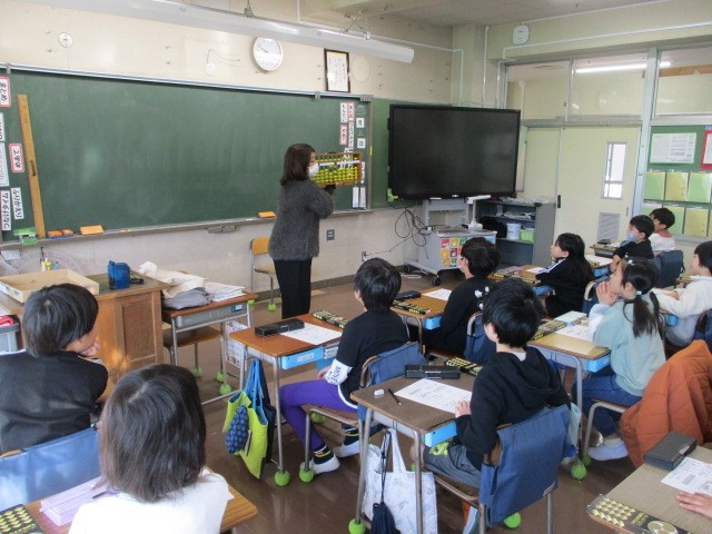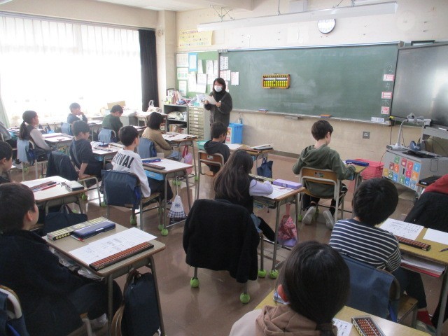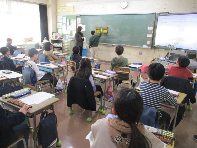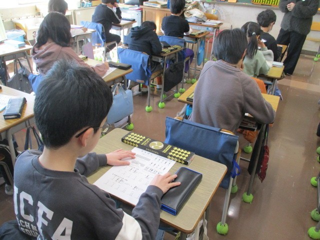 講師の先生をお招きして、そろばん教室が行われました。初めてそろばんに触る子供たちは、ドキドキわくわくした様子でした。そろばんに通っている子供は、自分のそろばんを持参し、取り組んでいました。みんな、「たのしい」「覚えるとハマる」などと楽しんでいました。