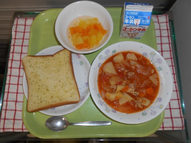 今日のメニューは好きな子も多いと思います。フルーツポンチのやさしい甘さがほっとする味でした。