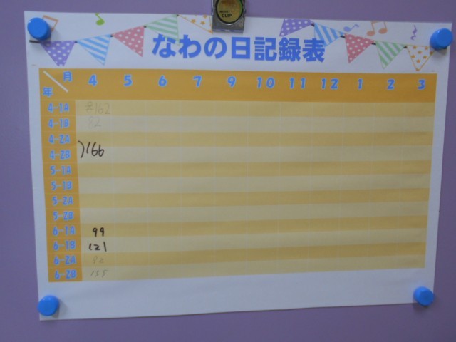緑小では、毎月「なわの日」という長縄をとぶ日があります。
