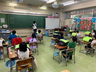 今日から分散登校が始まりました。今日はAグループの登校日です。登校すると、ピロティで健康観察カードを提出し、健康観察をしてから入室します。久しぶりの登校に、少し不安な様子な子や、うれしくて張り切っている子が見られました。特に1年生は初めての集団生活が始まり、先生から学校や学級のルールを学びました。