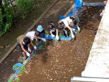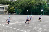 校舎南側の使っていない花壇を昨年度末に主事さんが、田んぼに変えてくれました。新しくできた田んぼに5年生が田植えをしました。バケツ稲も育てています。1年生は、校庭でかけっこ遊びをしました。晴れ渡った青空の下、どの子も思い切り走ることができました。