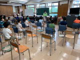 専科の授業も始まりました。音楽室では、3年生が授業をしていました。コロナ対応で音楽室の空間を広く使うために、学習する向きが校庭側を向く並び方に変わりました。先生も新しい先生となり、子供たちは新鮮な気持ちで授業に臨んでいました。