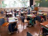 今年度初めての避難訓練を実施しました。地震に対する避難行動のしかたを確認しました。(1年生にとっては初めてでしたが、誰もが真剣に机の下に素早くもぐり、頭を隠すことができました。)机の下に避難したあとは、放送で校長先生の話を聞きました。訓練の積み重ねによって自分の命を守る意識と行動力を身に付けさせています。