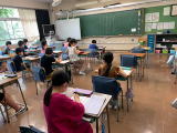 火曜日と木曜日の朝は、朝学習の時間です。各学級で学習したことの定着を図るためのプリントやドリルを行います。一人一人が集中して取り組んでいました。