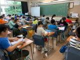 4年生は、学習したわり算のテストに真剣に取り組んでいました。