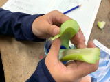 6年生は、植物の水の通り道をたしかめる実験結果に興味津々でした。みんなよく頑張りました。