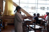 今朝は、オンラインによる朝会でした。校長先生の今日のお話は、「コオーディショントレーニング」についてでした。「くの字」「Sの字」「ラディアン」という動きを運動する前に取り入れましょうと話されました。 学校では、薬剤師さんが定期的に教室の環境調査をしています。下の写真は、教室の空気の検査をしている様子です。照度や騒音の検査もし、学校の安全衛生面を管理してくださっています。