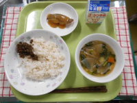 【献立】・牛乳・ビビンバ・たまごスープ 今日は6年生が韓国とのオンライン交流を...