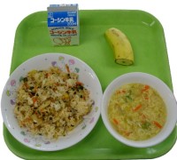 献立 キムチチャーハン ユーミータン バナナ 子どもたち人気上位3つに入る「キムチチャーハン」です。 「今日もおいしかったです!」とうれしい感想を言ってもらいました。 バナナは大好きな子から「一人10...
