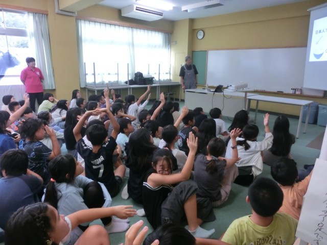 川口谷さんのお話に時折驚きの反応を見せたり、たくさん質問するなど、元気いっぱいの5年生でした。