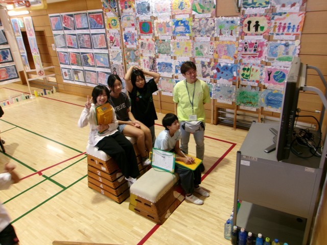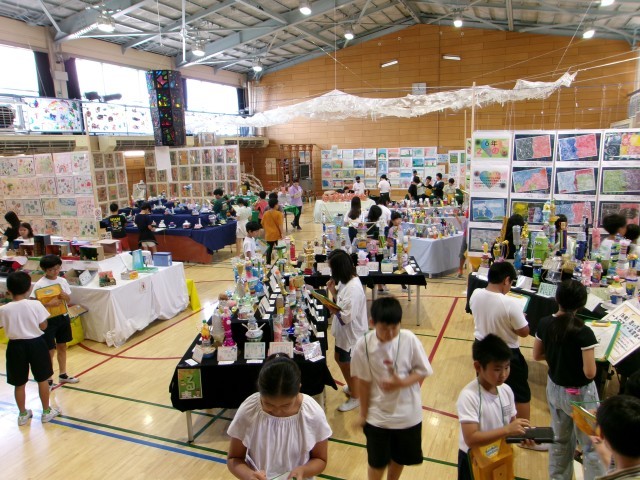 鑑賞日には自分たちでつくった共同作品で遊んだり、他の学年の作品を熱心に鑑賞しているすがたがみられました。