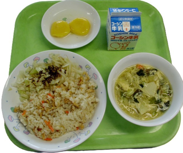 こぎつねごはんとキャベツの塩昆布あえを一緒に食べると、ちょうどよい塩加減でおいしくいただけました。