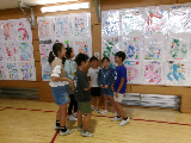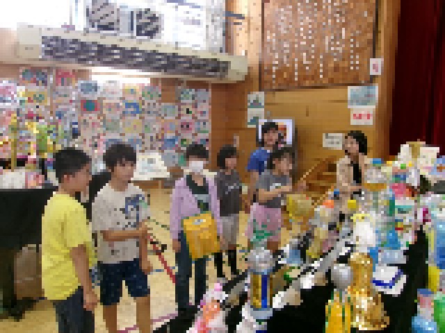 展覧会では、全学年の子どもたちが1学期から制作してきた数々の作品が展示され、3年生の子どもたちにとっても貴重な体験になりました。
