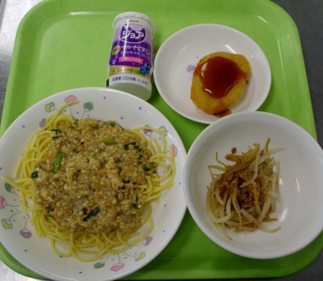 スパゲッティの配膳に手間取ったクラスもありましたが、よく食べていました。