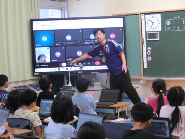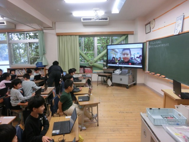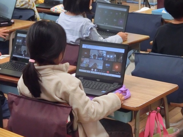 1年生の3クラスで、WEB会議ツール「Meet」の使い方を確認し、みんなで接続しました。