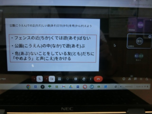 本日の給食時に臨時の生活指導をオンラインで実施しました。